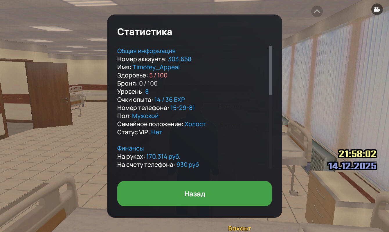 6. Создать Психиатрическое отделение больницы. Надо оно, чтобы забирать психов в больницу и лечить там их ( по рп )