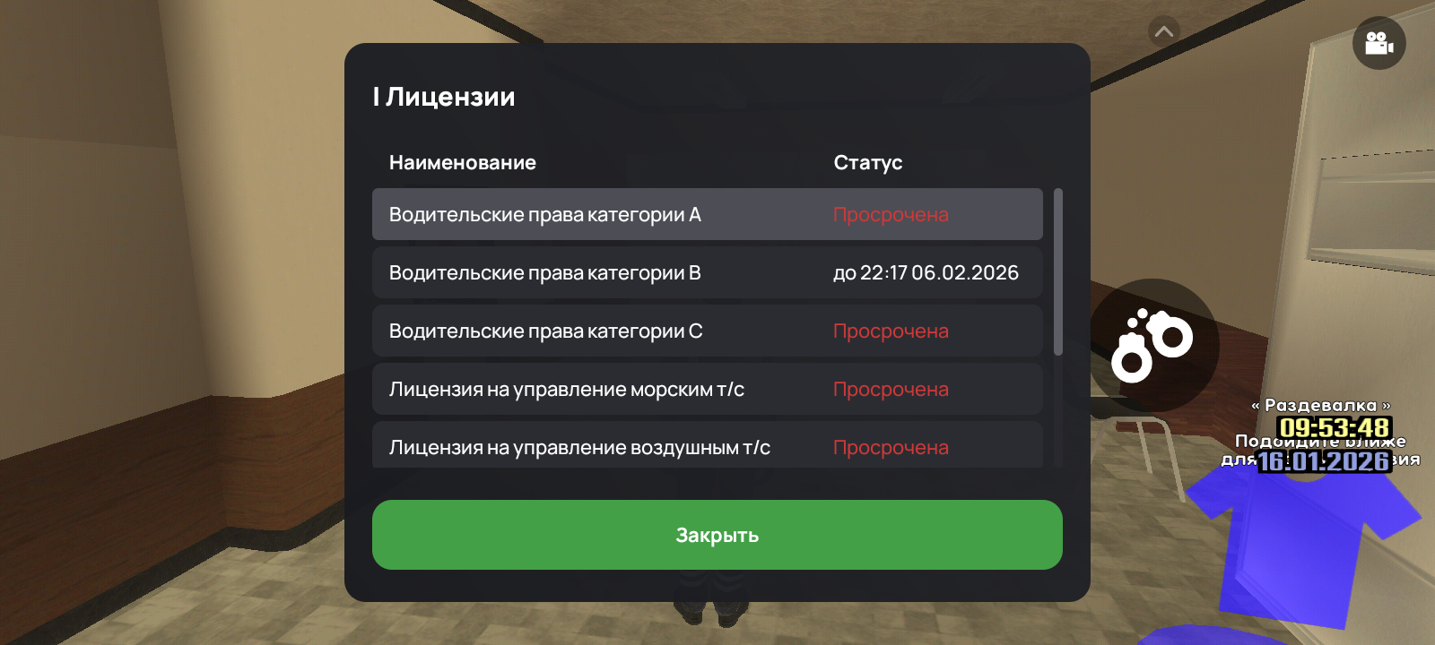 2. Скриншот /lic, /pass, /showvb, /med + time: