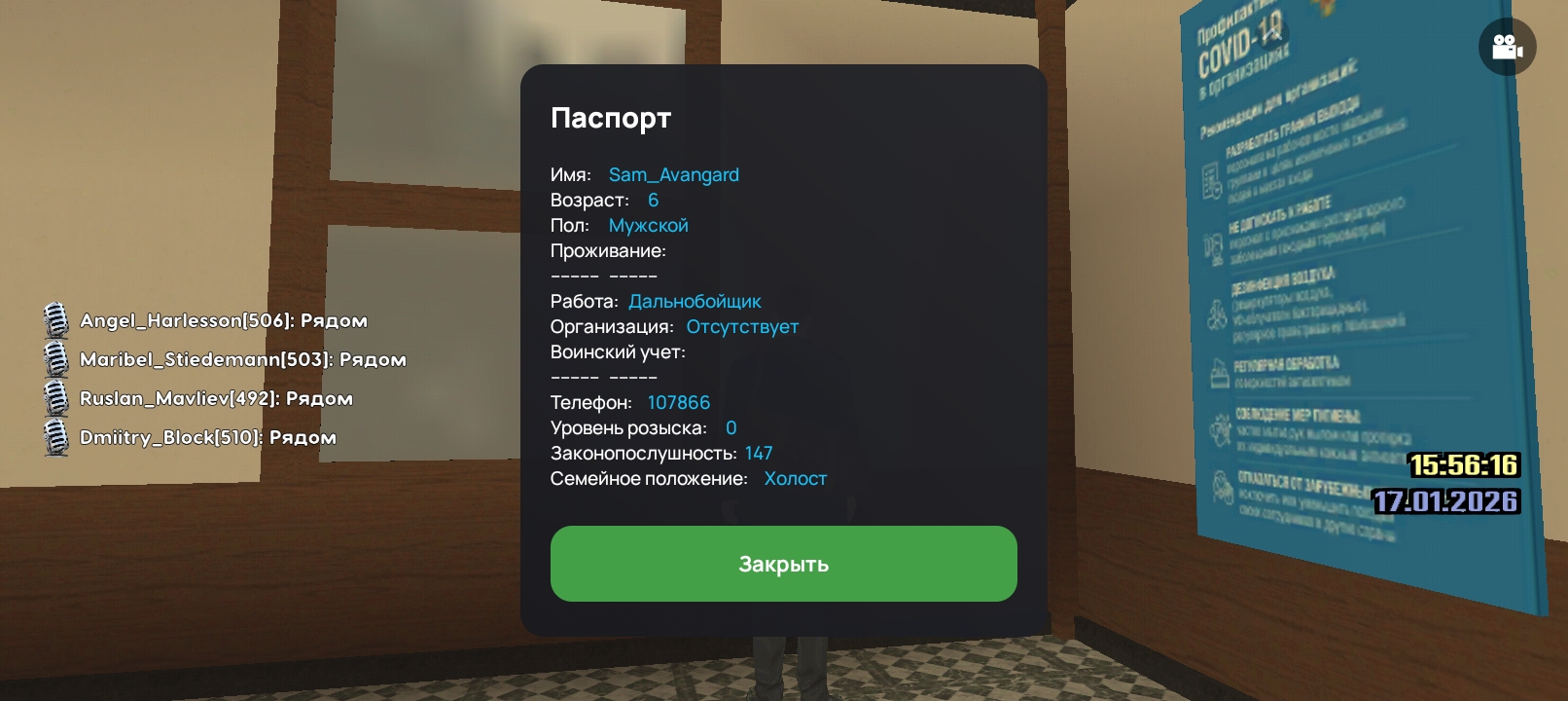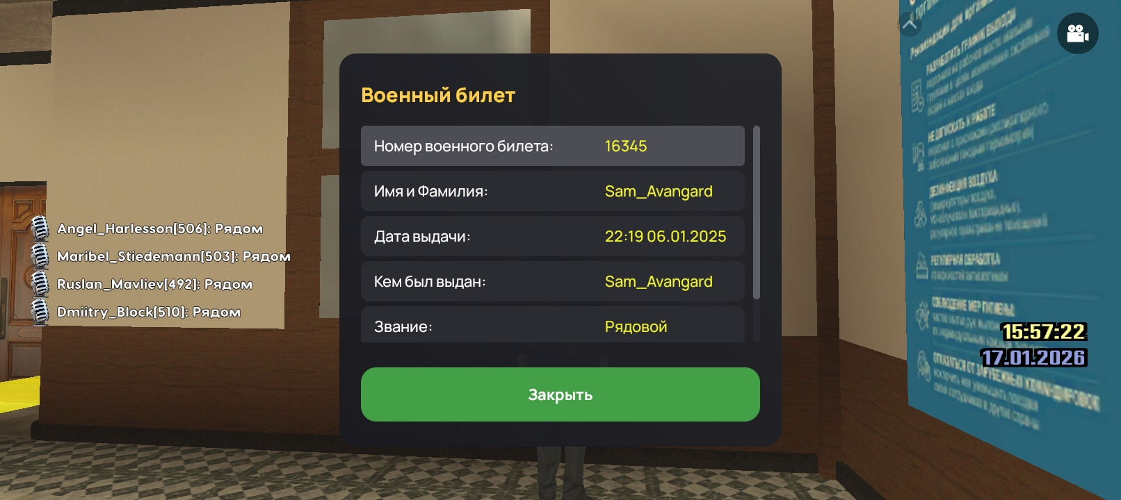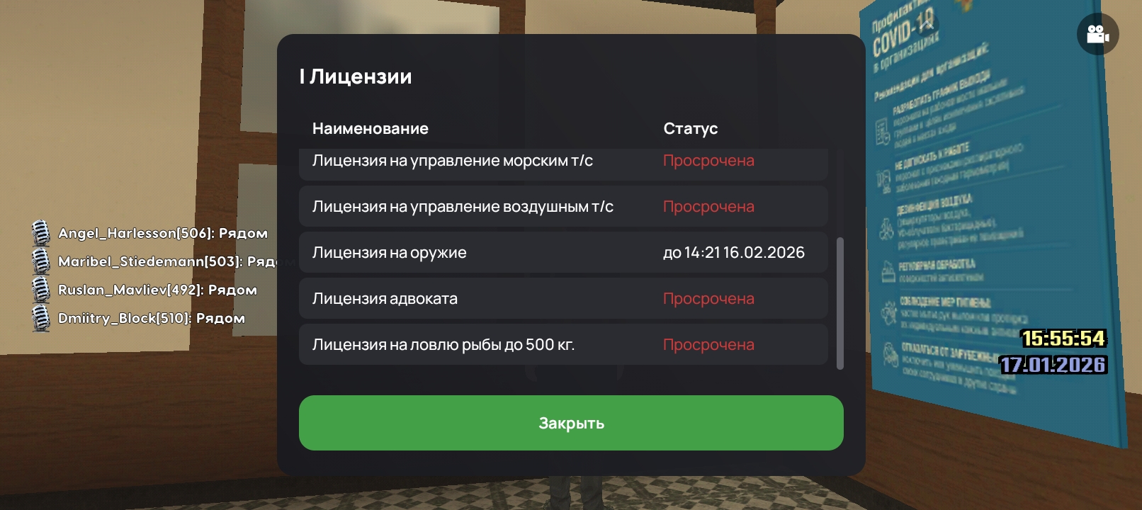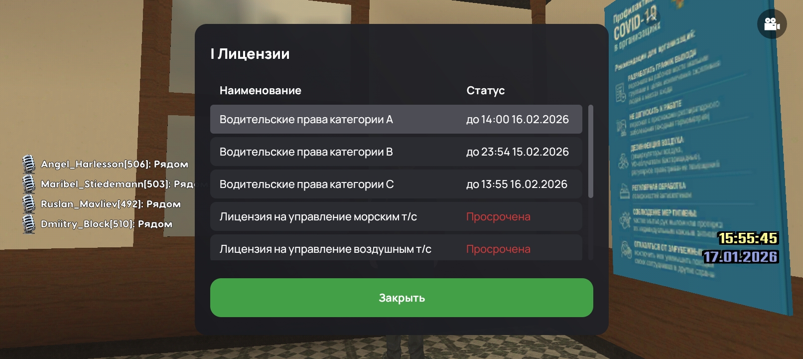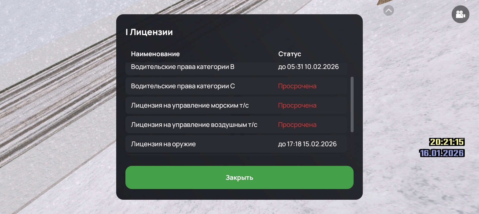 2. Скриншот /lic, /pass, /showvb, /med + time:Посмотреть вложение 203113Посмотреть вложение 203114Посмотреть вложение 203116