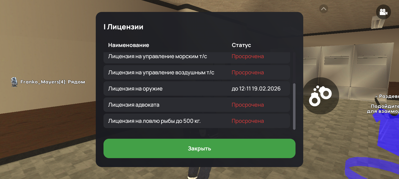 2. Скриншот /lic, /pass, /showvb, /med + time: