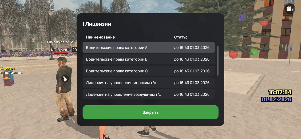 2. Скриншот /lic, /pass, /showvb, /med + time:https://allwebs.ru/image/Screenshot-2026-02-01-12-42-41-170-com.liverussia.game.googleplay.hwpcnJ