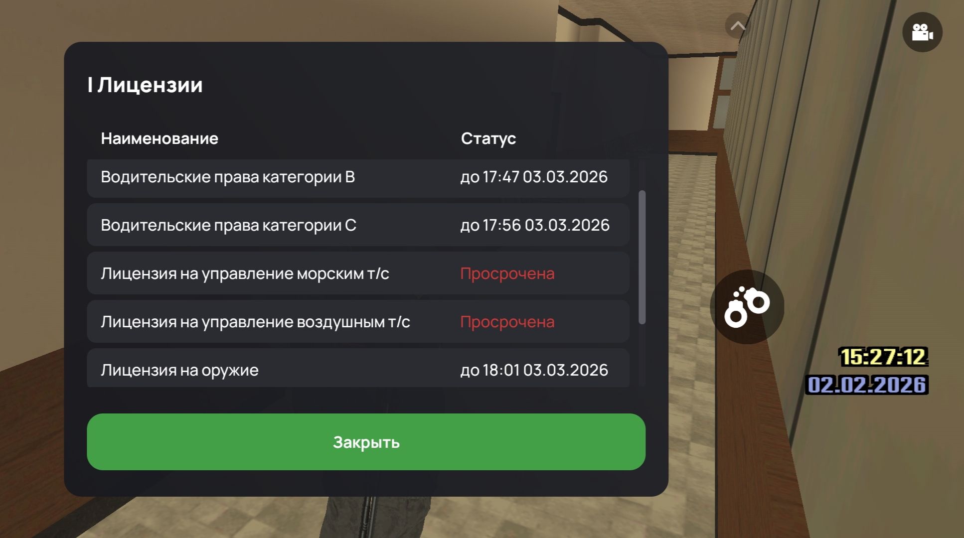 3) Перечень следующих документов. (Лицензия, Мед-карта, военный билет): ниже