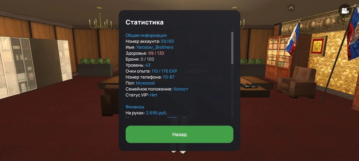 [4] Выполненная работа - 2 дня отслужил на данной должности. Вступил в подразделение УСБ. Сделал 3 сеанса слежки за организацией МВД.