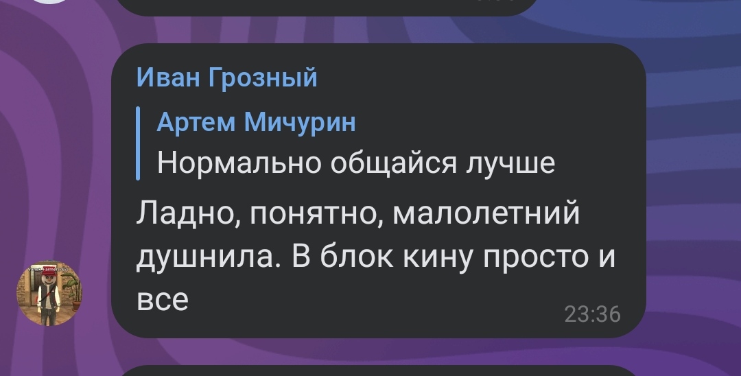 Описание нарушения: Я написал человеку про его ошибки словах, после этого он ответил "чё". Я написал "нормально общайся лучше". Последующий ответ вы можете видеть ниже.