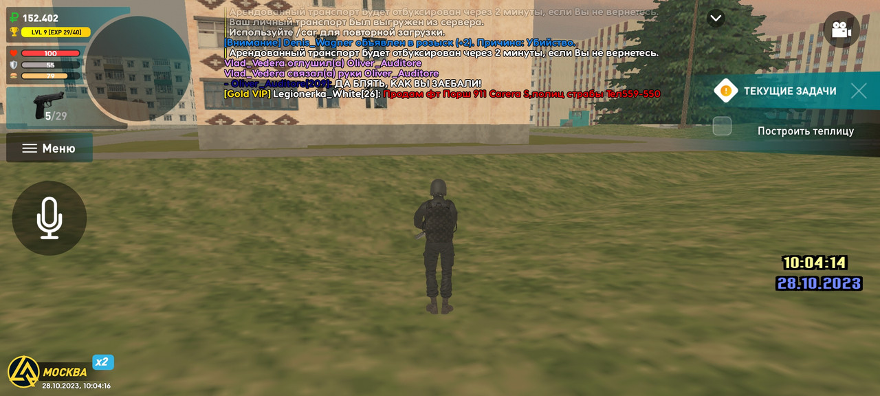 Описание нарушения: гоняюсь я за ним, я работая в фсб начинаю предпринимать меры и начинаю стрелять, подхожу близко - связал причем без рп. Пишу в репорт за разморозкой.