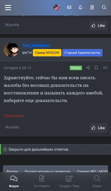 5. Суть жалобы: В жалобе https://forum.liverussia.online/index.php?threads/ss.26893/ я прикрепил скриншот как СС мне выдал выговор, после чего я был уволен, написал жалобу. Ответ от Администратора ниже... Он просто ответил какой то бред, наверное Администратор был сонный ибо это его стиль жизни хввхвх, администратор своим текстом показал выступление смешнее цирка, доказательства были в скрине, что не хватило данному шутнику, не понятно. Уважаемая старшая администрация, прошу взять во внимание его и остальную администрацию, ибо на сервере от администрации происходит бред.