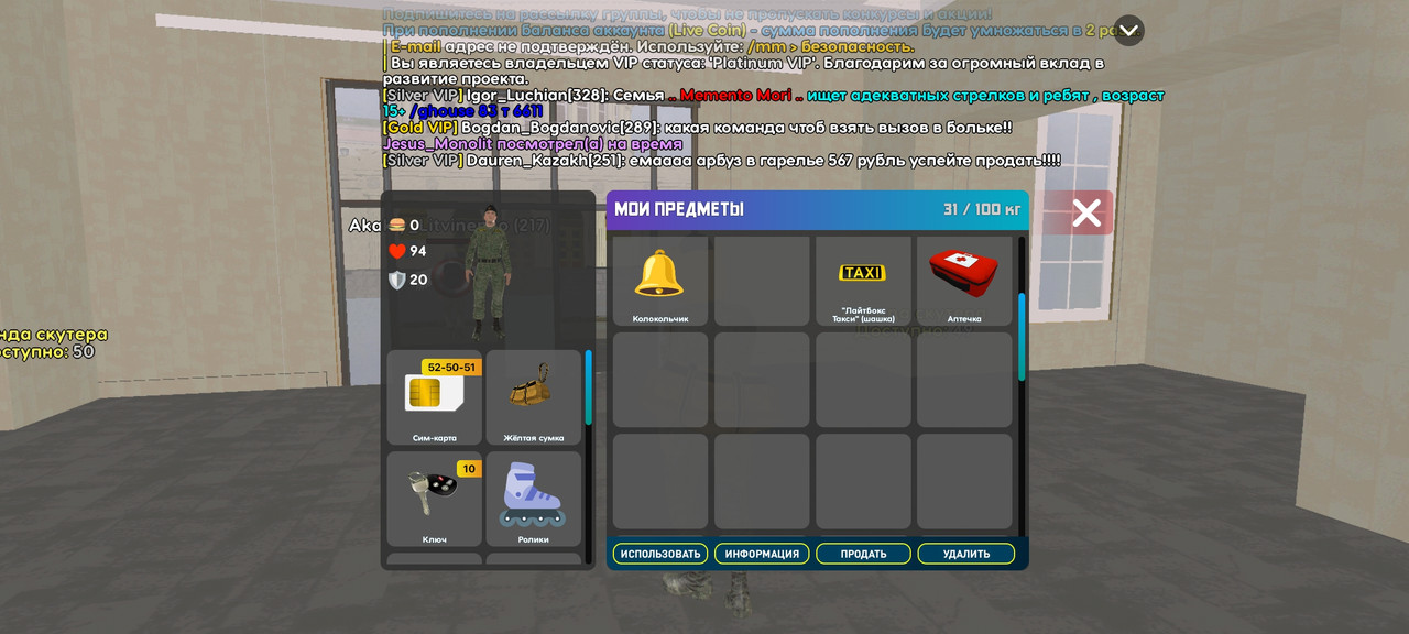 4. Полное описание проблемы: На дажнах залагал инвентарь, и получилось что я случайно купил расширение инвентаря за 1000 доната. Прошу вернуть 1000 доната