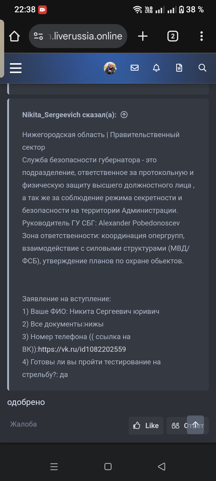 Губернатору Нижегородской области