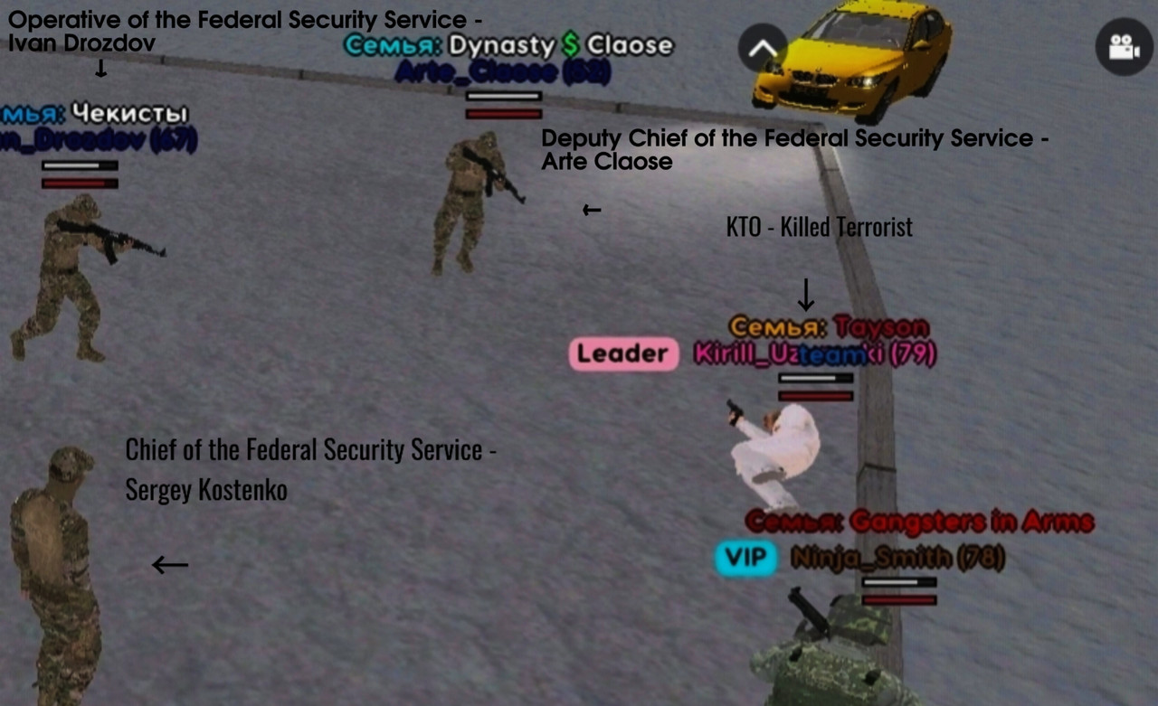Первый этап - Сотрудники оперативный части делятся на экипажи и выезжают с офиса на поиски Тимура Джимона, Ездя по рации департамента поступает вызов о том что человек бьёт всех, оперативная часть приезжают на место...