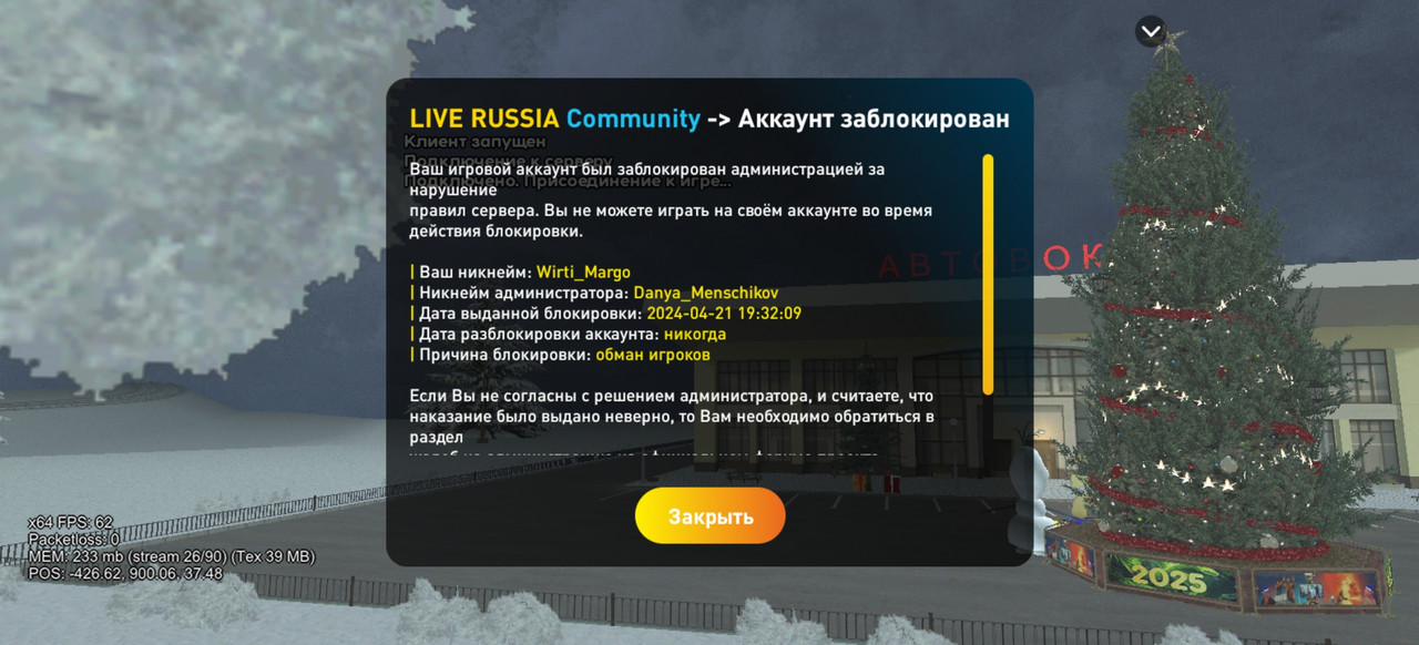 Блокировка аккаунт за обман игрока выдается навсегда, разблокировка может быть только если вы договоритесь с игроком о возврате имущества на которое вы его обманули.