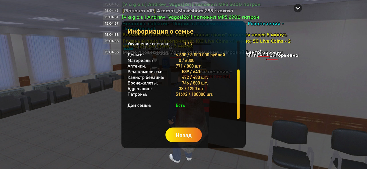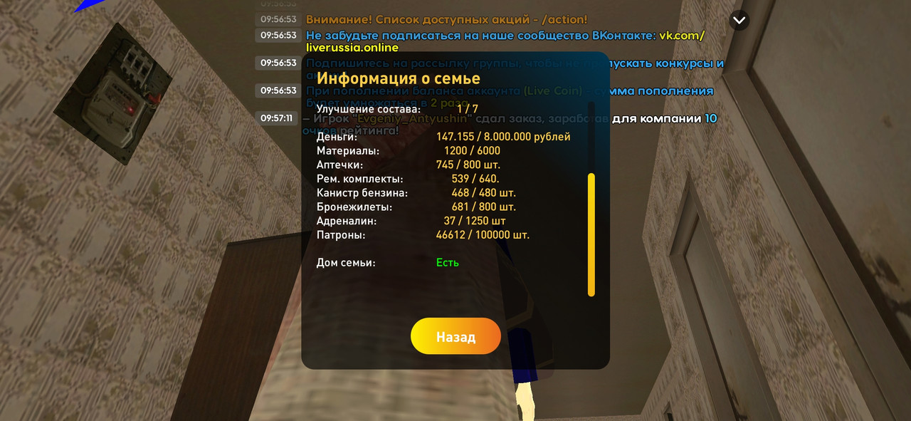 • Суть жалобы: Слил склад семьи, было 50к пт, стало 46к, также скажите какую меру наказания вы к нему применили и на сколько