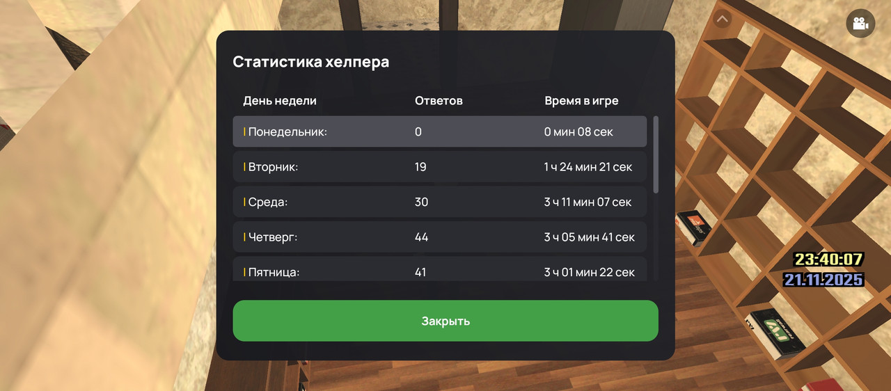 Скриншот (/hstats + /time):https://vk.com/wall855484660_189