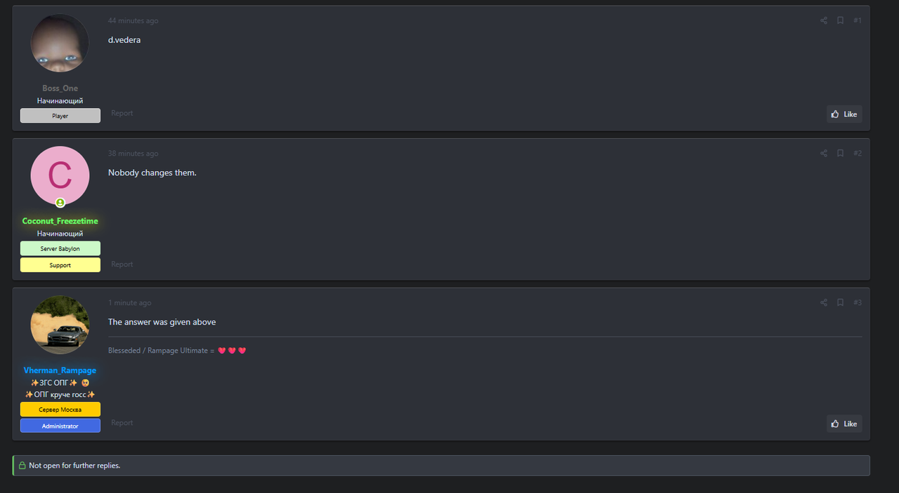 - Суть жалобы: Администратор рассматривает темы на английском форуме, при этом он играет на Москве.